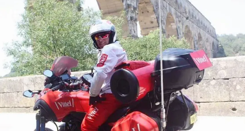 - 𝗧𝗼𝘂𝗿 𝗱𝗲 𝗙𝗿𝗮𝗻𝗰𝗲 𝗮̀ 𝗝 -𝟱𝟲 : 𝗹'𝗲́𝗺𝗼𝘁𝗶𝗼𝗻 𝗱𝗲 𝗕𝗲𝗻𝗼𝗶𝘁 𝗟𝗲𝗴𝗿𝗶𝘅. L'ancien coureur du VC Bocage - qui pilote aujourd'hui la moto fraîcheur sur le Tour de France - n'a pu masqué sa grande émotion au moment d'évoquer l'arrivée du Tour à Vire.