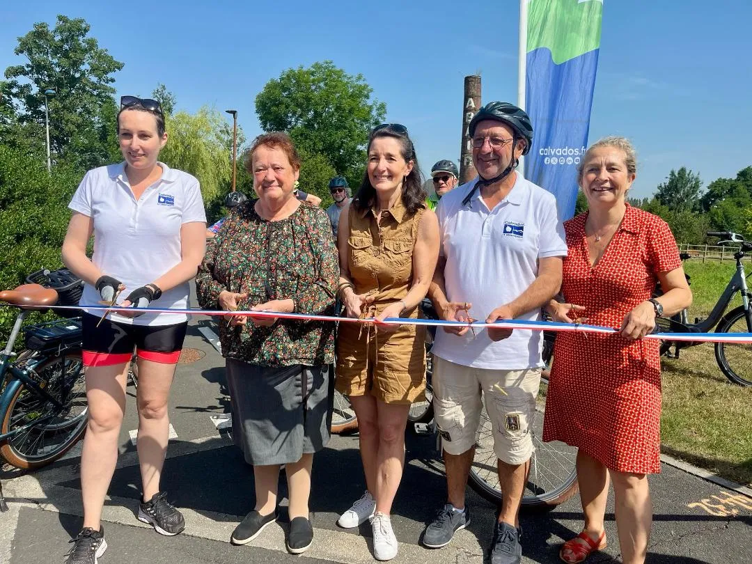 - 𝗟𝗲 𝗱𝗲́𝘃𝗲𝗹𝗼𝗽𝗽𝗲𝗺𝗲𝗻𝘁 𝗱𝗲 𝗟𝗮 𝗩𝗲𝗿𝗱𝗼𝘆𝗮𝗻𝘁𝗲 𝘀𝗲 𝗽𝗼𝘂𝗿𝘀𝘂𝗶𝘁 𝗱𝗮𝗻𝘀 𝗹𝗲 𝘀𝘂𝗱 𝗱𝘂 𝗗𝗲́𝗽𝗮𝗿𝘁𝗲𝗺𝗲𝗻𝘁. 𝗠𝗮𝗿𝗱𝗶 𝟭𝗲𝗿 𝗷𝘂𝗶𝗹𝗹𝗲𝘁, 𝗔𝘂𝗱𝗿𝗲𝘆 𝗚𝗔𝗗𝗘𝗡𝗡𝗘, 𝗰𝗼𝗻𝘀𝗲𝗶𝗹𝗹𝗲̀𝗿𝗲 𝗱𝗲́𝗽𝗮𝗿𝘁𝗲𝗺𝗲𝗻𝘁𝗮𝗹𝗲 𝗱𝘂 𝗖𝗮𝗹𝘃𝗮𝗱𝗼𝘀, 𝗲𝗻 𝗽𝗿𝗲́𝘀𝗲𝗻𝗰𝗲 𝗱𝗲𝘀 𝗲́𝗹𝘂𝘀 𝗹𝗼𝗰𝗮𝘂𝘅, 𝗮 𝗶𝗻𝗮𝘂𝗴𝘂𝗿𝗲́ 𝗹𝗮 𝗽𝗿𝗲𝗺𝗶𝗲̀𝗿𝗲 𝗰𝗼𝗻𝘁𝗶𝗻𝘂𝗶𝘁𝗲́ 𝗱𝗲 𝗟𝗮 𝗩𝗲𝗿𝗱𝗼𝘆𝗮𝗻𝘁𝗲 𝘀𝘂𝗿 𝗹𝗲 𝘁𝗲𝗿𝗿𝗶𝘁𝗼𝗶𝗿𝗲 𝗱𝗲 𝗩𝗶𝗿𝗲 𝗮𝘂 𝗡𝗼𝗶𝗿𝗲𝗮𝘂. La première continuité de l’itinéraire, accessible dès cet été, a nécessité 200 km de jalonnement pour un montant de 135 000 € TTC ainsi que quatre opérations d’aménagement indispensables (aménagements spécifiques en site propre destinés à sécuriser les cyclistes sur les points critiques du parcours), à Orbec, Vendeuvre, Falaise et Vire pour un montant de 1,57 M€ TTC. L’aménagement réalisé à Vire permet de sécuriser la traversée de la RD 524 (route de Granville), empruntée par plus de 10 000 véhicules par jour. Le franchissement de cet axe permet d’établir un cheminement sécurisé connectant le secteur de Vaux de Vire.